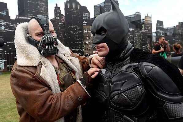 BANE and his famous leather trench coat from The Dark Knight Rises. This Trench Coat took Over a year to be designed and it has become a Legend. It suits the character of Bane-mix of a Revolutionary and a Dictator.