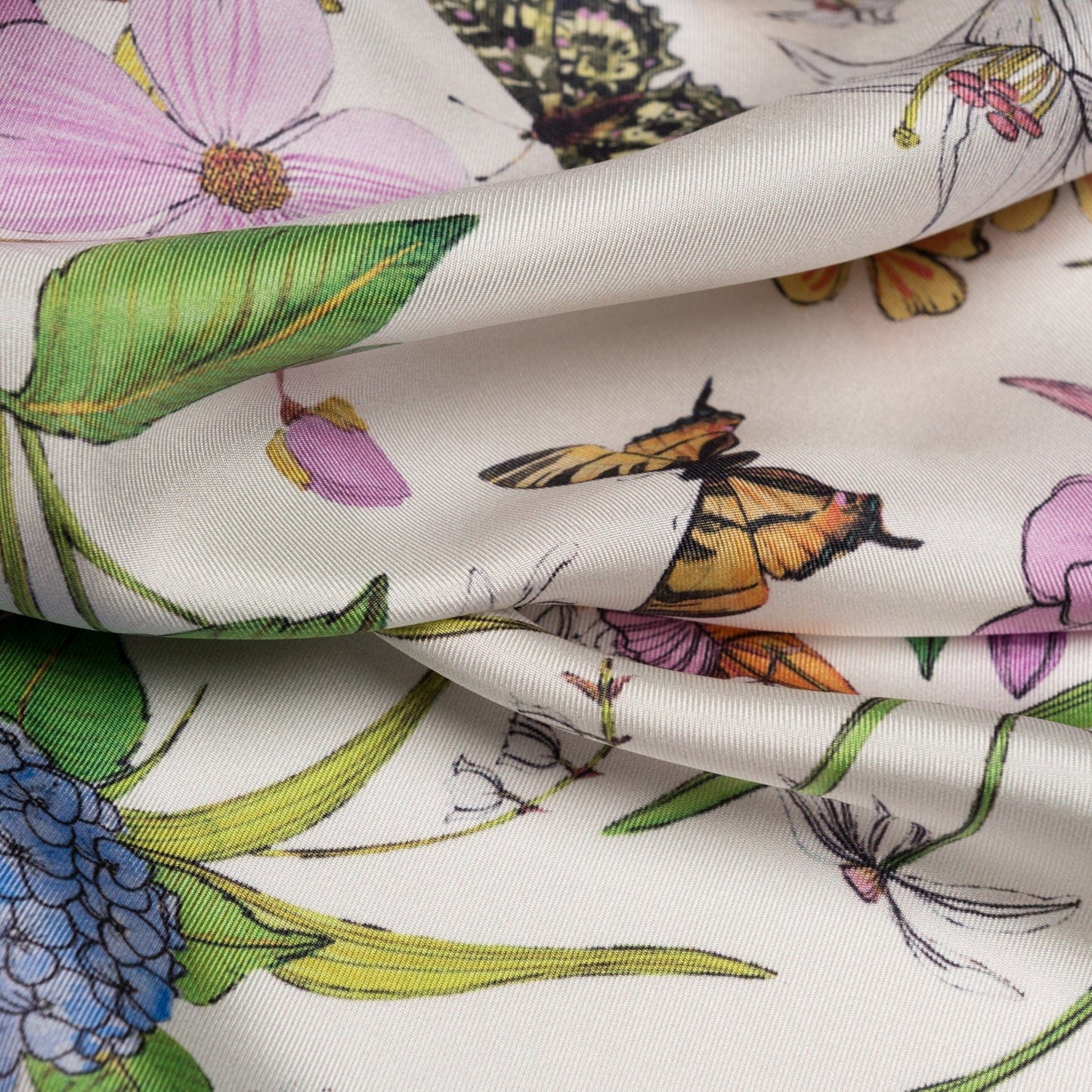 Inspired by my love for gardens and the stunning botanical gardens here in Italy, this scarf features a beautiful floral print that captures the essence of nature’s beauty.