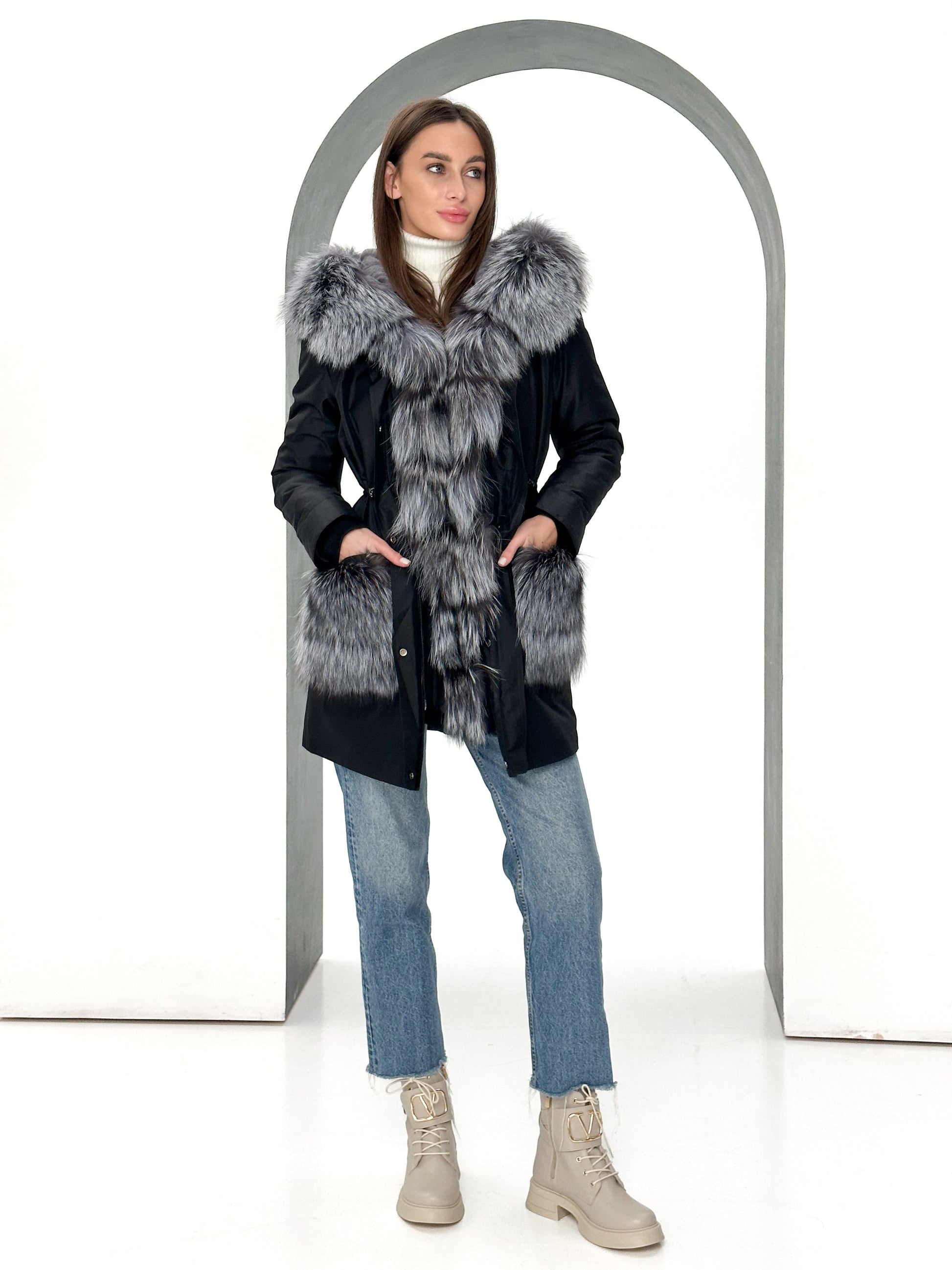 Genuine Silver Fox Fur Rabbit Fur Insulated Parka