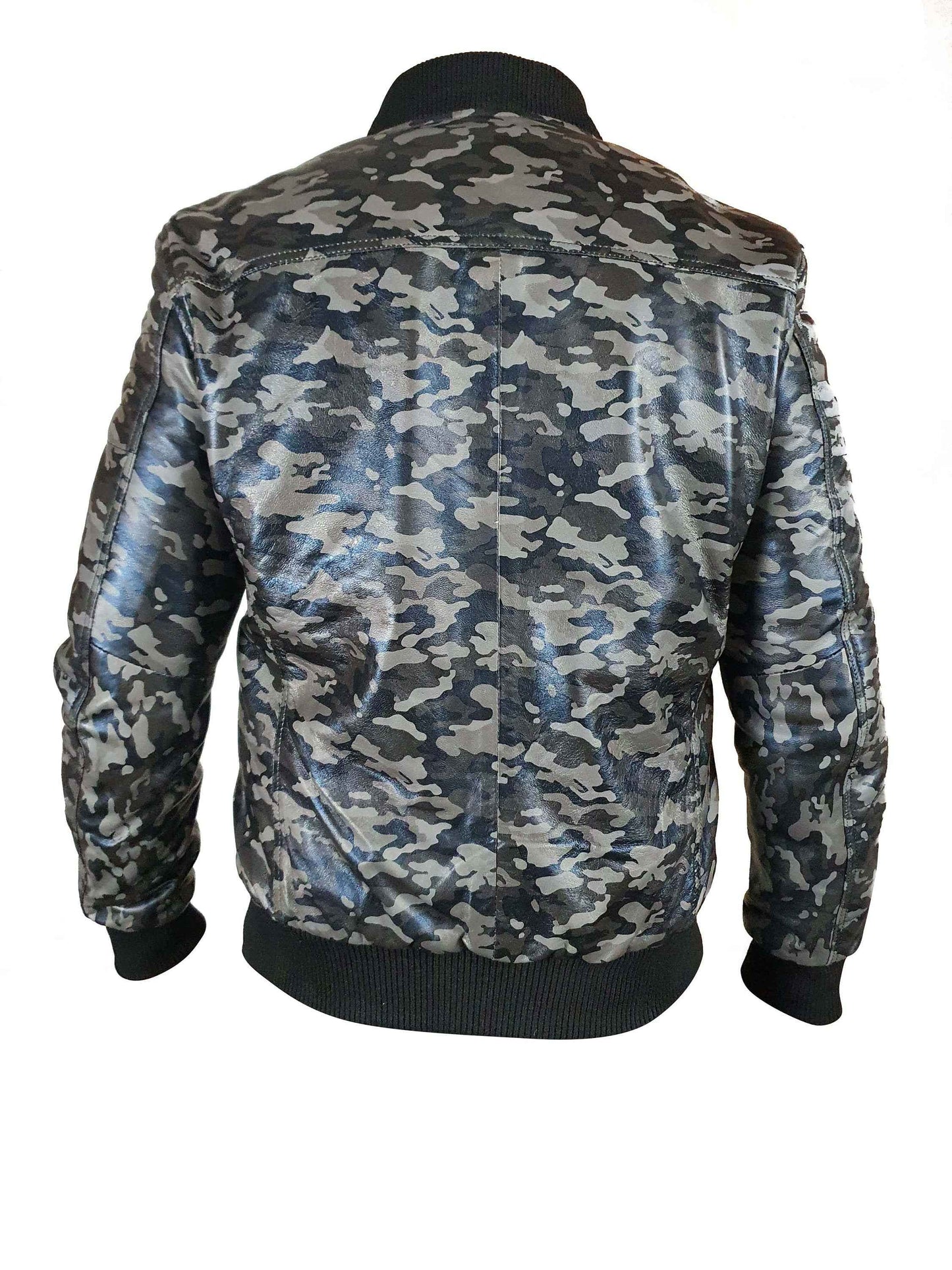 Handmade Bomber Grey Camouflage Military Print Leather Jacket
