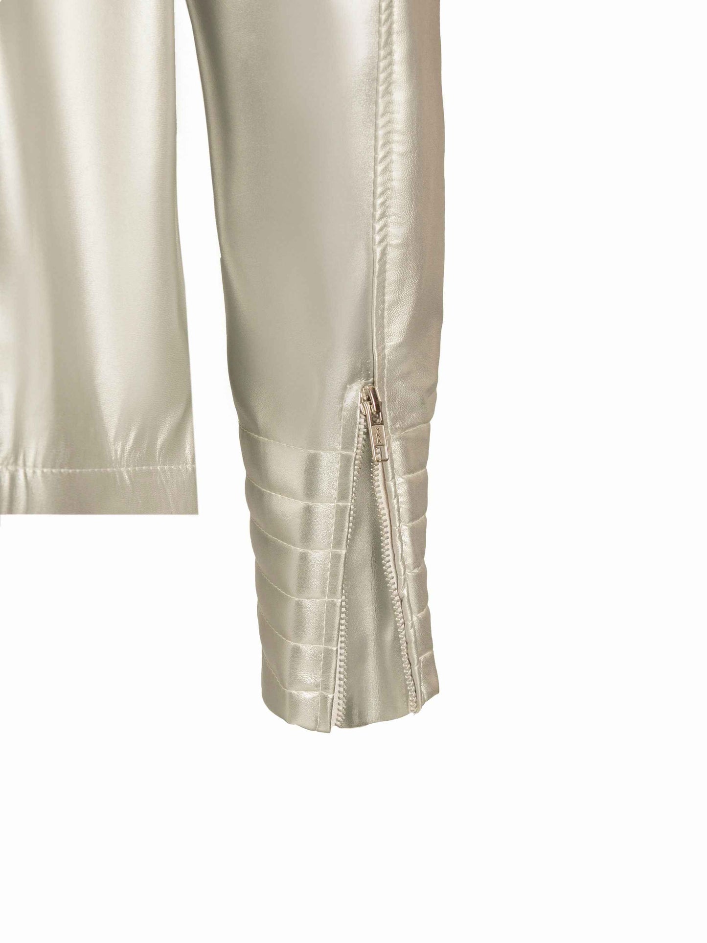 Metallic silver biker style genuine leather jacket