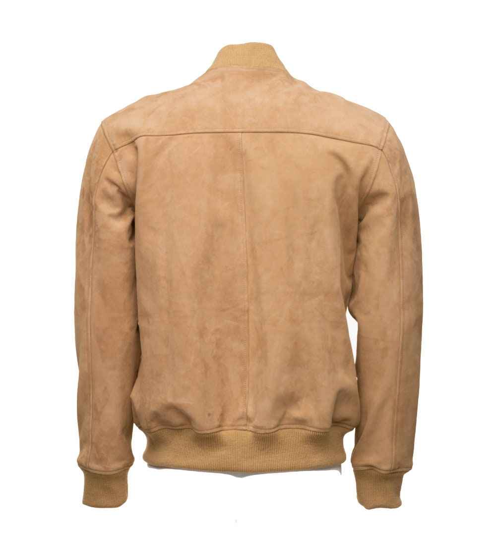 Handmade Sandy Beige Suede Bomber Leather Jacket With Ribbed Cuffs
